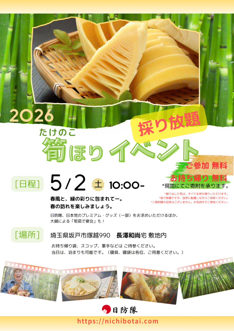 以下の通り、筍(たけのこ)掘りイベントを開催します。