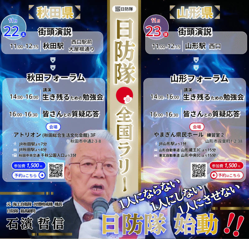 日防隊の「生き残る為の勉強会」を北海道秋田市、山形市にて行います。